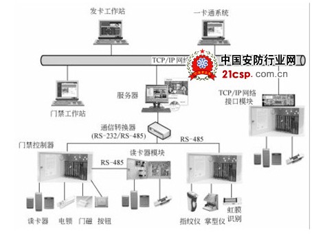 (2)IP加RS-485总线方式,系统架构参见图3。